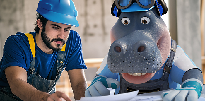 - With its powerful and robust presence, the hippopotamus symbolises strength and protection. Just as this impressive animal guards its territory, we ensure that everyone can work safely and well protected.
