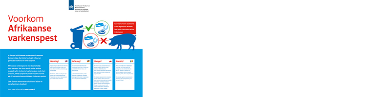 - Neem geen vlees- of dierlijke producten mee uit gebieden waar AVP voorkomt, om verspreiding via menselijk handelen te voorkomen.