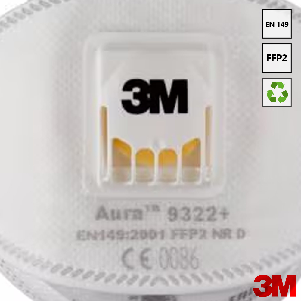 3M Aura 9322+ gevouwen stofmaskers FFP2 NR D met uitademventiel
