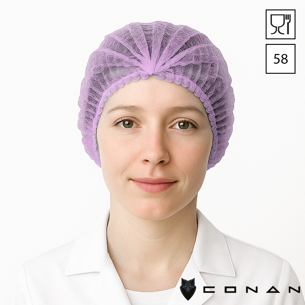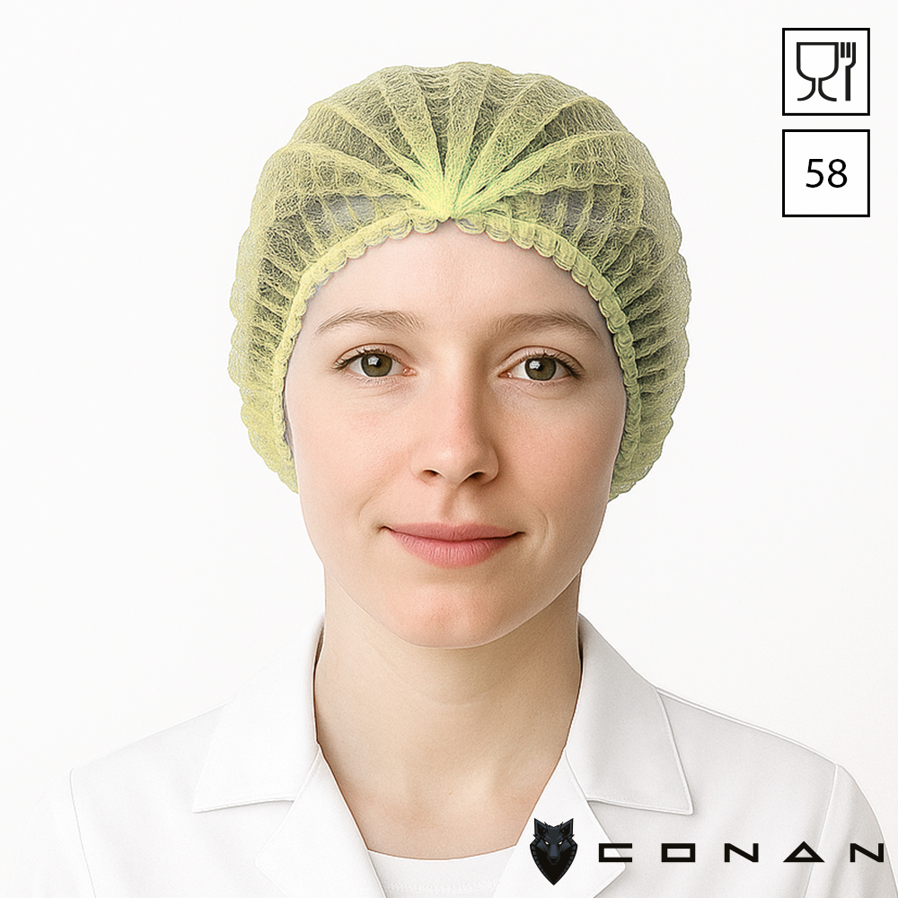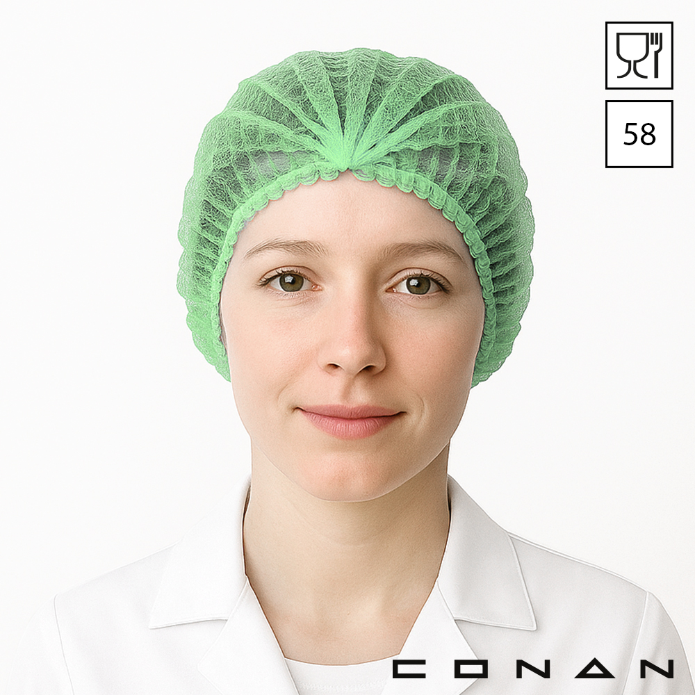 Conan 10-002 disposable wokkel haarnetjes 58 cm zijn food grade en gemaakt van non-woven polypropyleen. Deze hygiënische gevouwen haarnetjes zijn beschikbaar in 7 kleuren en geschikt als dispenservulling. Ze beschermen je omgeving, proces en eindproduct tegen uitvallend hoofdhaar en huidschilfers. Deze wokkel haarnetjes zijn ideaal voor kleurcodering en ook beschikbaar in 53 en 60 cm variant.