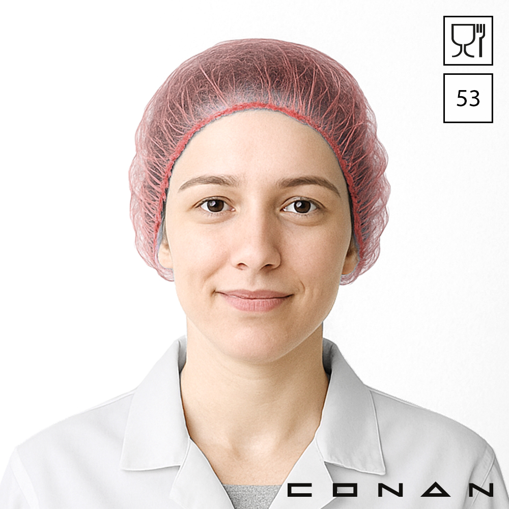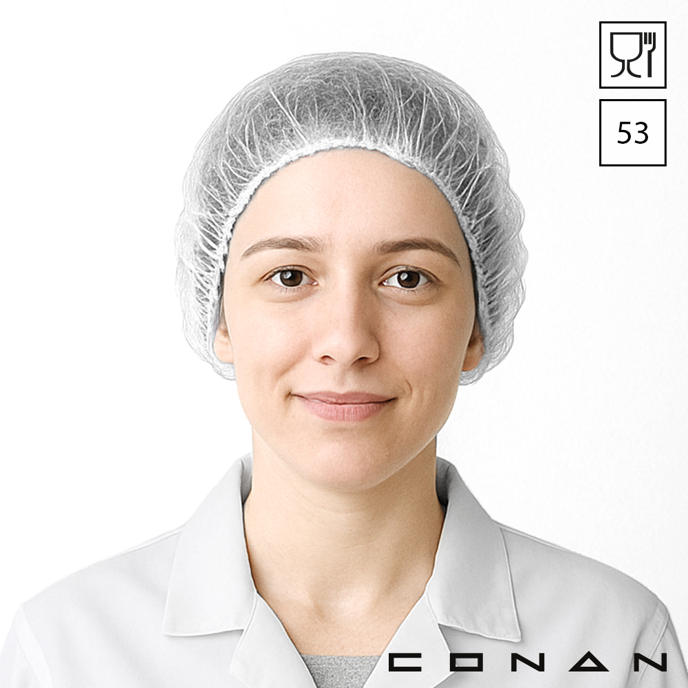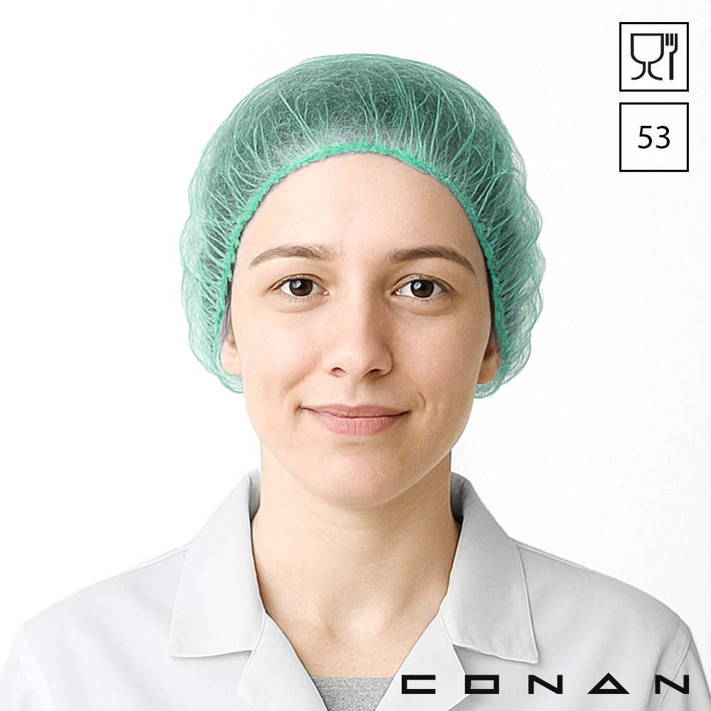 Conan 10-004 hygiënische Roundcaps 53 cm zijn food grade en gemaakt van non-woven polypropyleen. Deze disposable haarnetjes zijn beschikbaar in 5 kleuren en geschikt voor de voedingsindustrie. Ze beschermen je omgeving, proces en eindproduct tegen uitvallend hoofdhaar en huidschilfers. De verschillende kleuren maakt dit artikel ideaal voor toepassing binnen kleurcode systemen.
