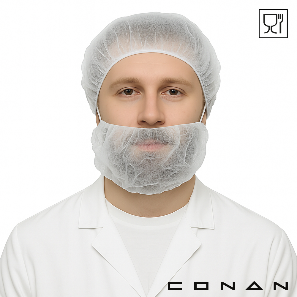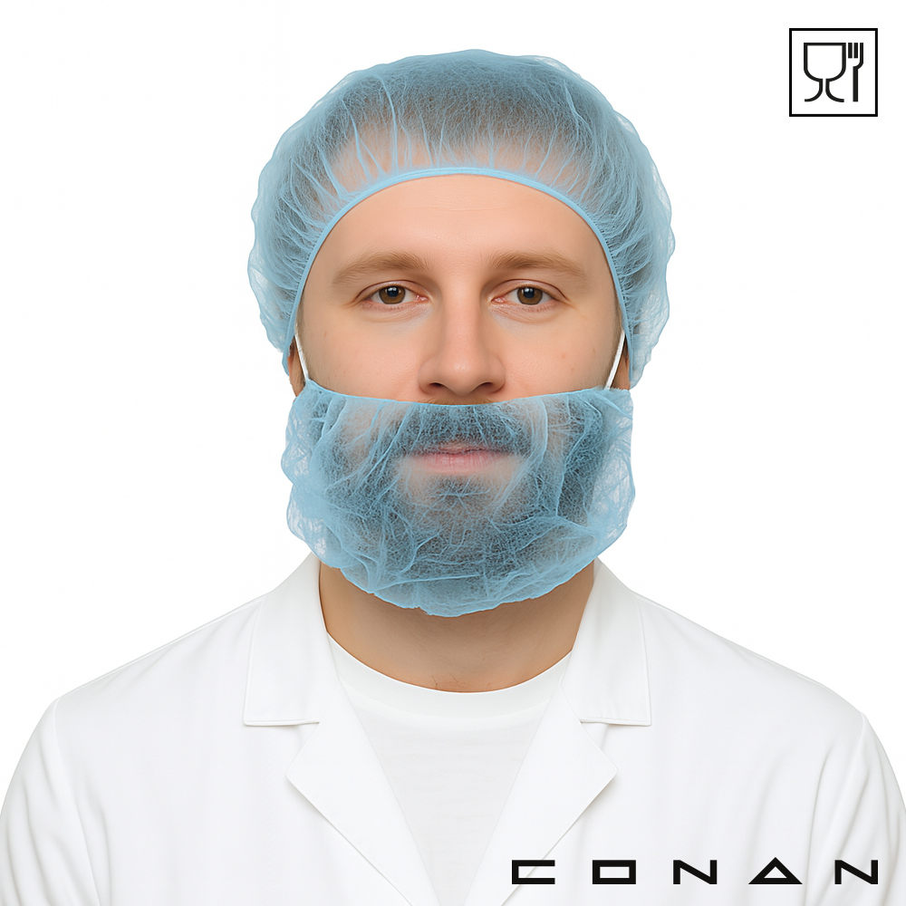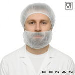 Conan 10-015 baardmaskers zijn gemaakt van food grade non-woven Polypropeen. Deze baardnetjes met 2 latex-vrije oorelastieken voorkomen dat snor- of baardhaartjes terechtkomen in een hygiënisch productieproces of eindproduct. Dit baardmasker is food grade gecertificeerd en geschikt voor eenmalige gezichtsbescherming. Ze zijn verkrijgbaar in 2 kleuren en ideaal voor kleurgecodeerde toepassing.