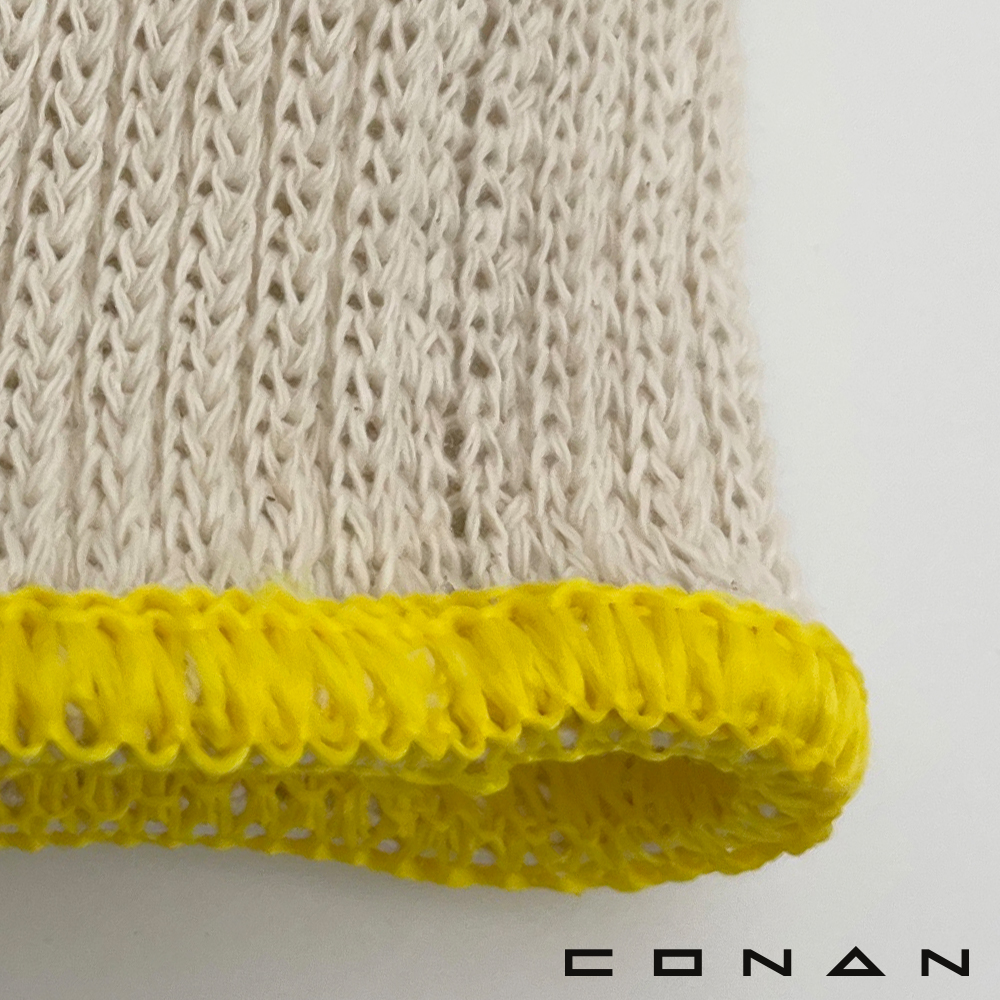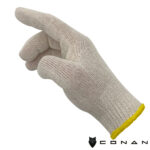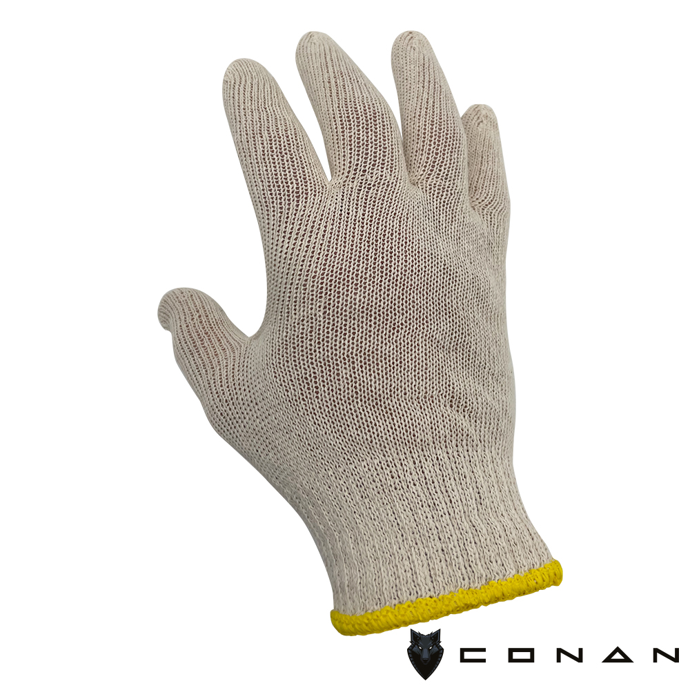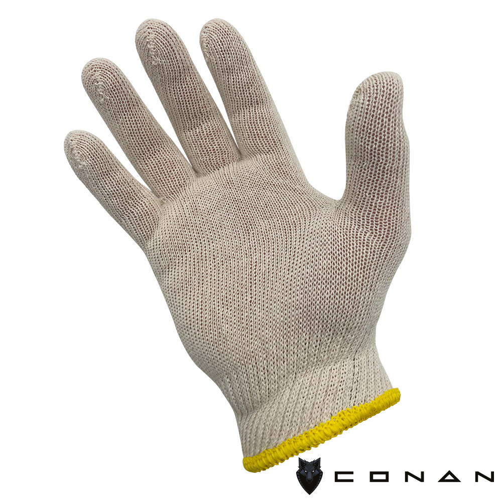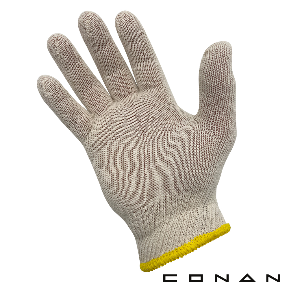 Conan 10-025 rondgebreide katoenen onderhandschoenen voor heren zijn voorzien van lang manchet met gele rand. Deze ecru kleurige onderhandschoen heeft een isolerende- en vocht absorberende werking. Je kan hem dragen onder je disposable, veiligheids- en werkhandschoenen voor een licht thermische bescherming. Zo blijven je handen lekker warm tijdens werkzaamheden op koude of gekoelde locaties.
