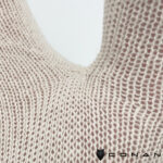 - Rondgebreid katoen met gele rand, sluit goed rondom de polsen.