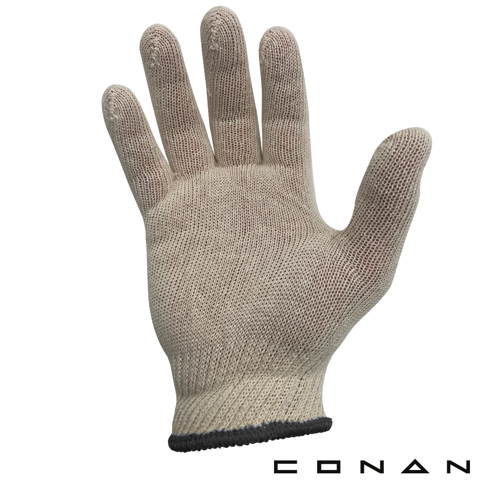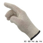 Conan 10-026 onderhandschoenen voor heren zijn gemaakt van rondgebreid heavy katoen. Deze stevige ecru kleurige isolerende onderhandschoen absorbeert transpiratie en heeft een extra lang manchet met zwarte rand. Draag hem onder je disposable, veiligheids- of werkhandschoenen voor een licht thermische bescherming. Zo blijven je handen lekker warm tijdens werkzaamheden op koude of gekoelde locaties.