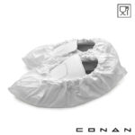 Conan 10-037 hygiënische overschoenen 41×17 cm zijn gemaakt van geruwd food grade Polyethyleen. Dit type overschoen is voorzien van een CPE-gecoate antislipzool voor extra grip en om uitglijden te voorkomen. De Conan 10-037 is verkrijgbaar in blauw of wit, in 1 maat en voorzien van elastieken. Met het dragen van disposable overschoenen kun je overdracht van vuil, sporen en bacteriën voorkomen.