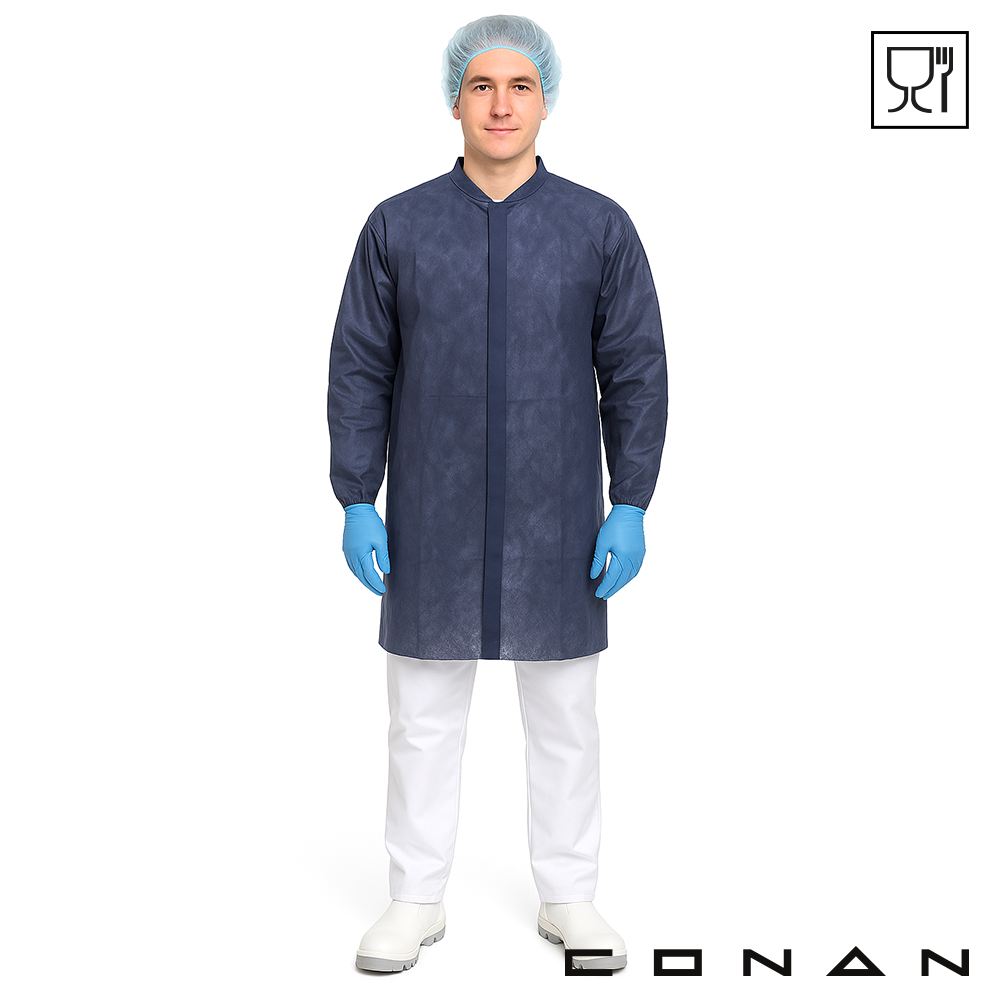 Conan 10-043 food grade bezoekersjassen met klittenbandsluiting zijn gemaakt van hygiënisch non-woven polypropyleen. Disposable bezoekersjassen worden gedragen om kruisbesmetting te voorkomen en zijn bedoeld voor medewerkers of gasten die een hygiënische (productie)locatie betreden. Conan 10-043 PP jassen zijn beschikbaar in 4 verschillende kleuren, 6 maten en ideaal voor kleurgecodeerde systemen.