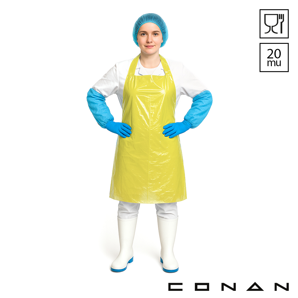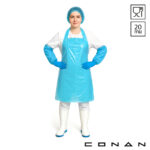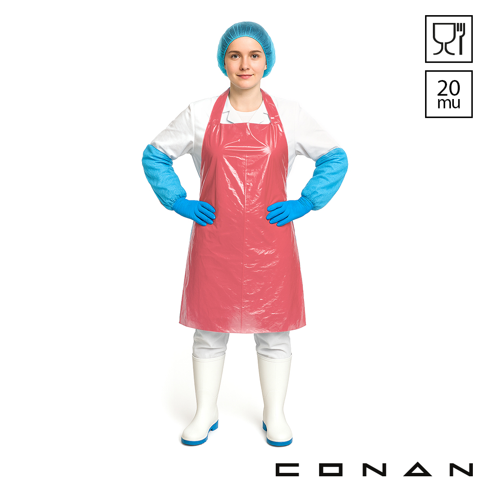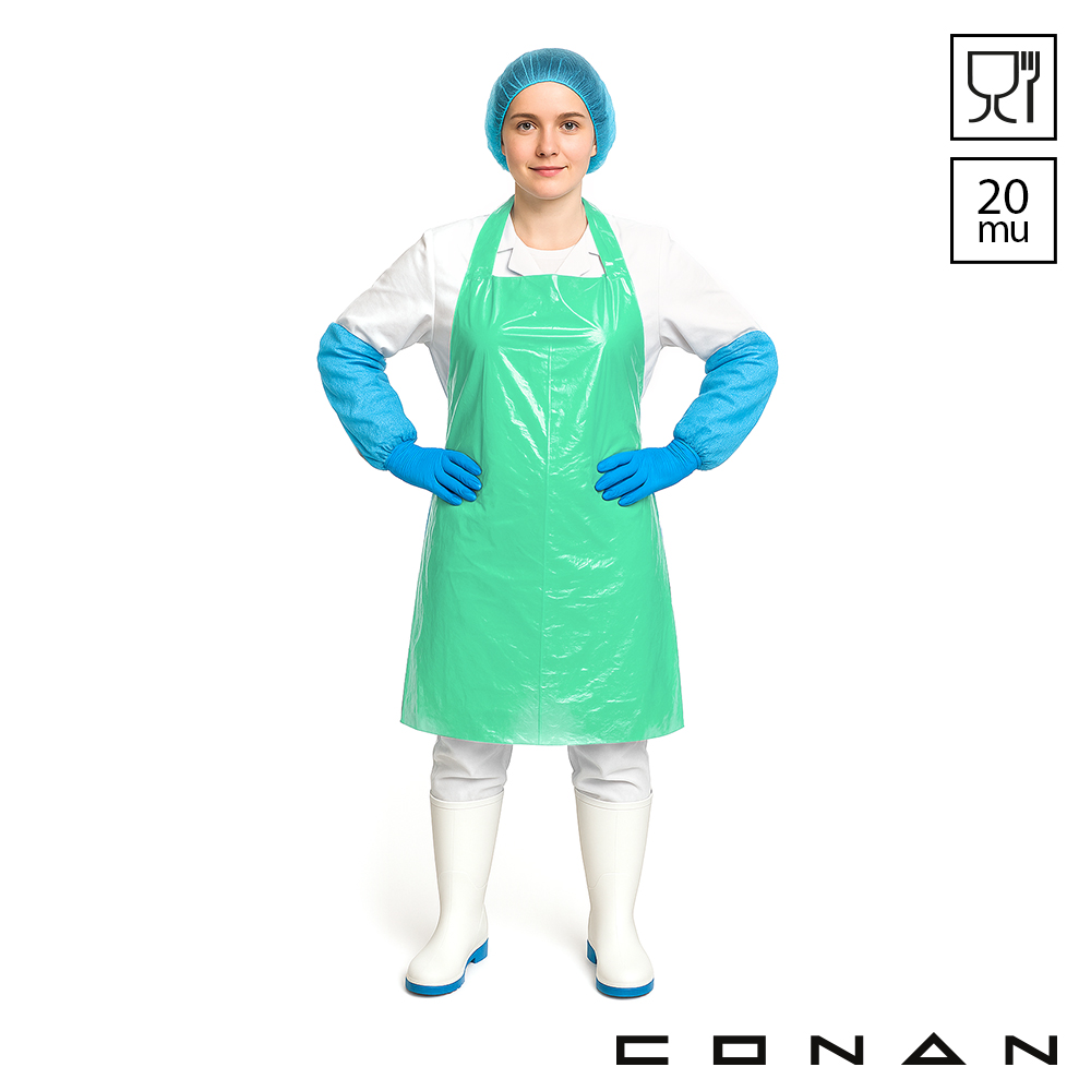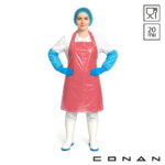 Conan 10-046 scheurschorten 80×125 cm zijn gemaakt van 20 mu food grade Polyetheen. Deze vloeistofdichte hygiënische wegwerpschorten met knooplint zijn verkrijgbaar in 5 kleuren en worden geleverd op scheurblokken. Ze beschermen je kleding tegen vuil, vloeistof of spatten en zijn goedgekeurd voor contact met voedingsmiddelen. Daarnaast zijn ze ideaal voor kleurgecodeerde systemen.