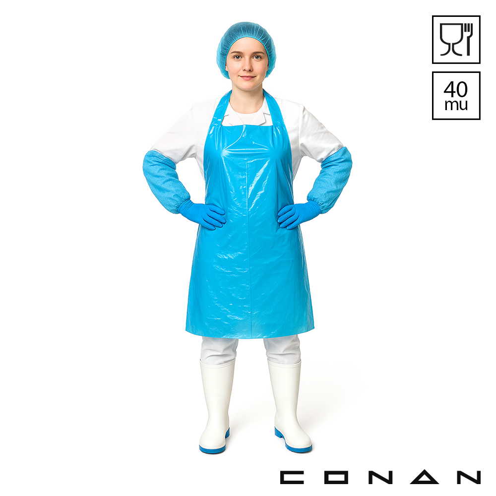Conan 10-047 blauwe scheurschorten 80×125 cm zijn gemaakt van 40 mu food grade Polyetheen. Deze vloeistofdichte hygiënische wegwerpschorten met knooplint worden geleverd op scheurblokken. Ze beschermen je kleding tegen vuil, vloeistof of spatten en zijn goedgekeurd voor contact met voedingsmiddelen. Conan 10-047 scheurschorten zijn ideaal voor de voedingsindustrie.