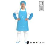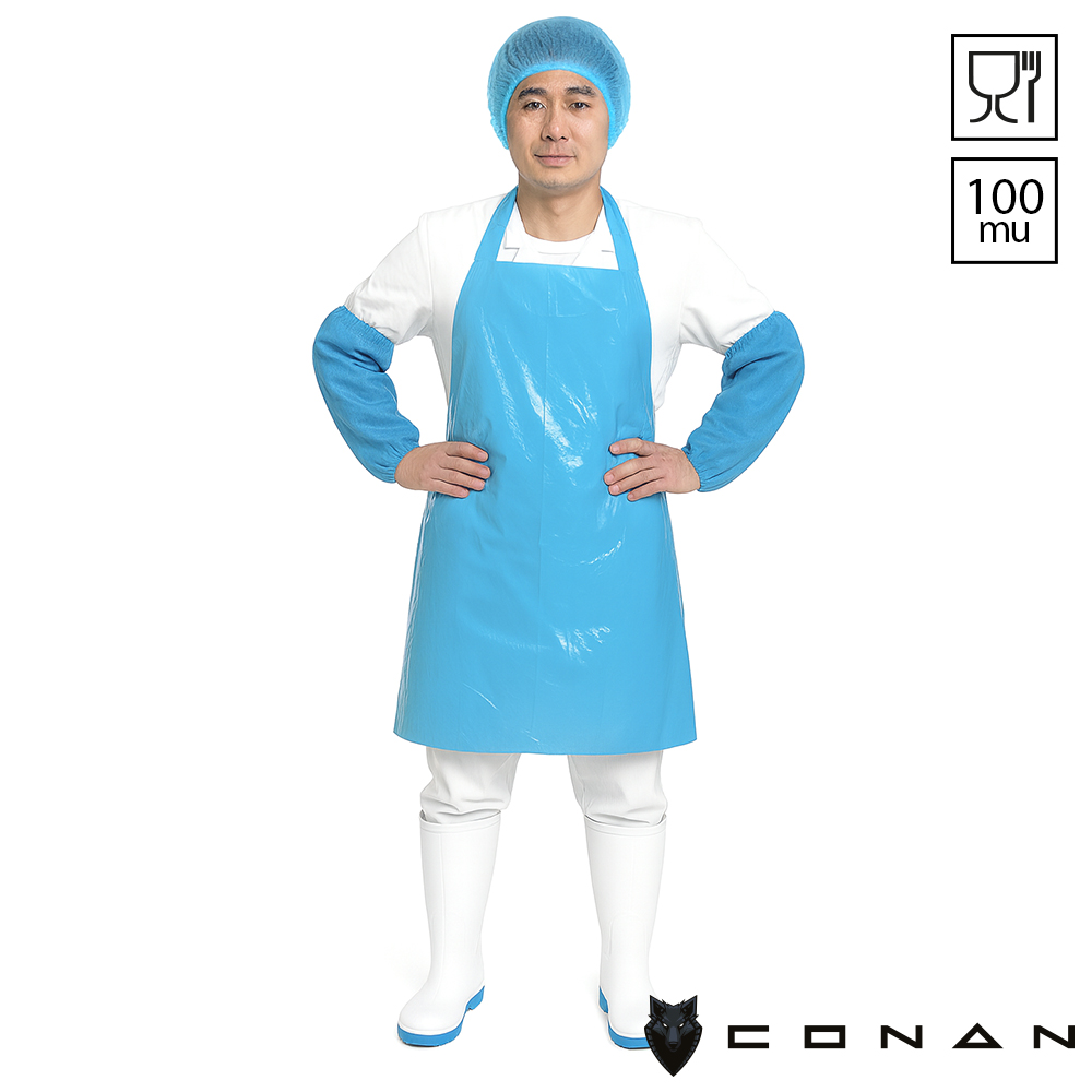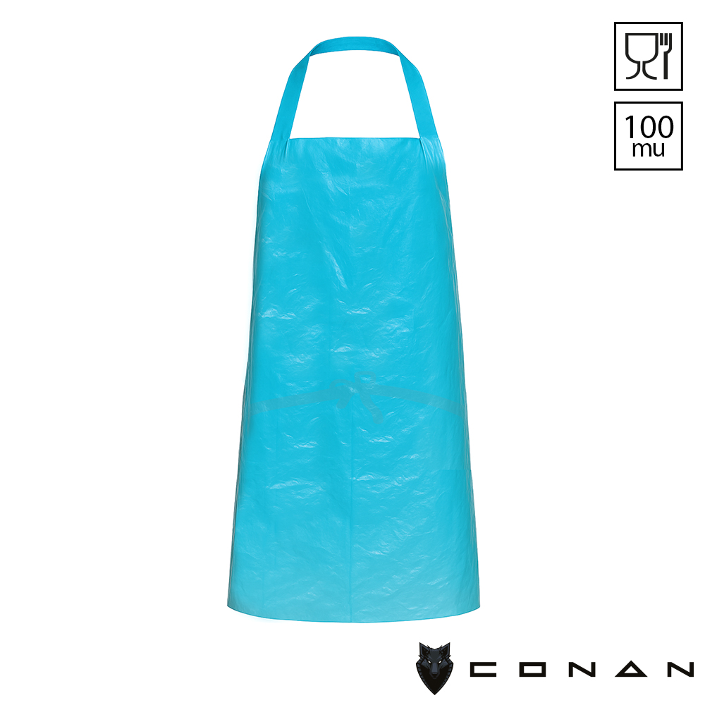 Conan blauwe 10-053 scheurschorten 80×160 cm zijn gemaakt van 100 mu food grade Polyetheen. Deze extra lange en dikke vloeistofdichte hygiënische wegwerpschorten met knooplint worden geleverd op scheurblokken met 50 stuks. Ze beschermen je kleding tegen vuil, vloeistof of spatten en zijn goedgekeurd voor contact met voedingsmiddelen, ideaal voor de voedingsindustrie.