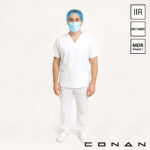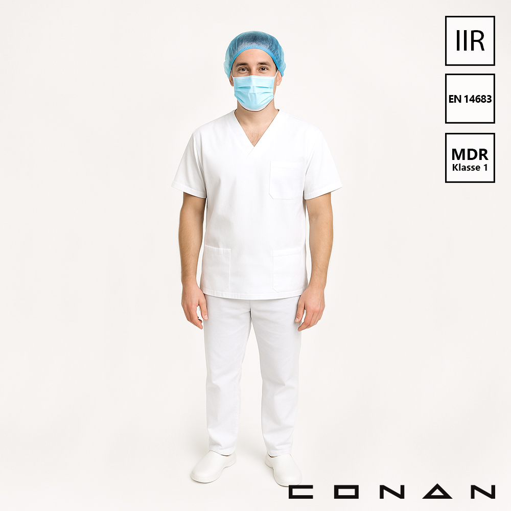 Conan 10-054 type IIR 3-laags mondmaskers zijn gemaakt van non-woven Polypropeen. Deze MDR Klasse 1 chirurgische mondmaskers bieden een bacteriële filter efficiency (BFE) van >99%. Dit hygiënische masker is voorzien van elastieken voor een comfortabele pasvorm en is vloeistofdicht. Conan 10-054 mondmaskers zijn voorzien van EN 14683 normering en geschikt voor eenmalig gebruik.