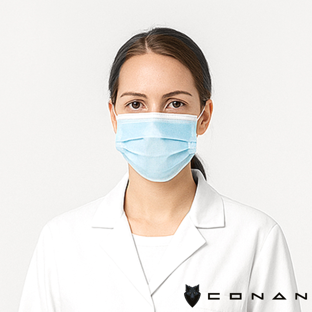 Conan 10-055 3-laags mondmaskers zijn gemaakt van non-woven Polypropeen. Deze civiele mondmaskers bieden een bacteriële filter efficiency (BFE) van >95%. Dit type hygiënemasker is voorzien van elastieken voor een comfortabele pasvorm en is vloeistofdicht. Conan 10-055 mondmaskers zijn voorzien van EN 14683 normering en geschikt voor eenmalig gebruik.