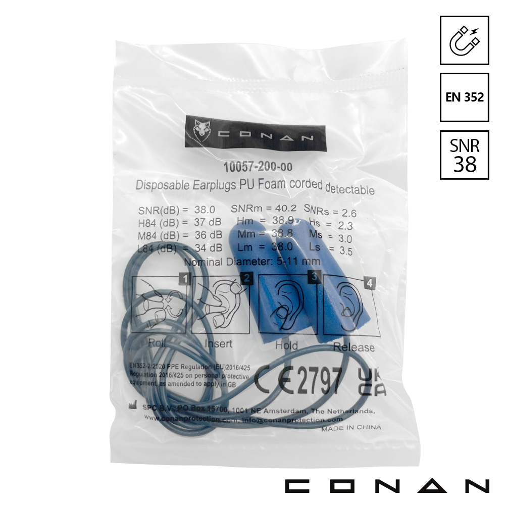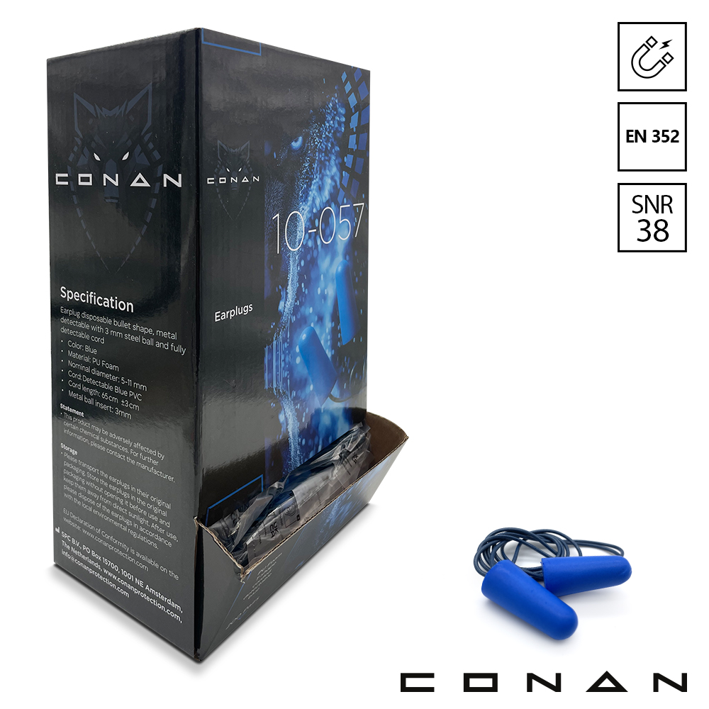 Conan 10-057 oordoppen metaal detecteerbaar met koord 38 dB