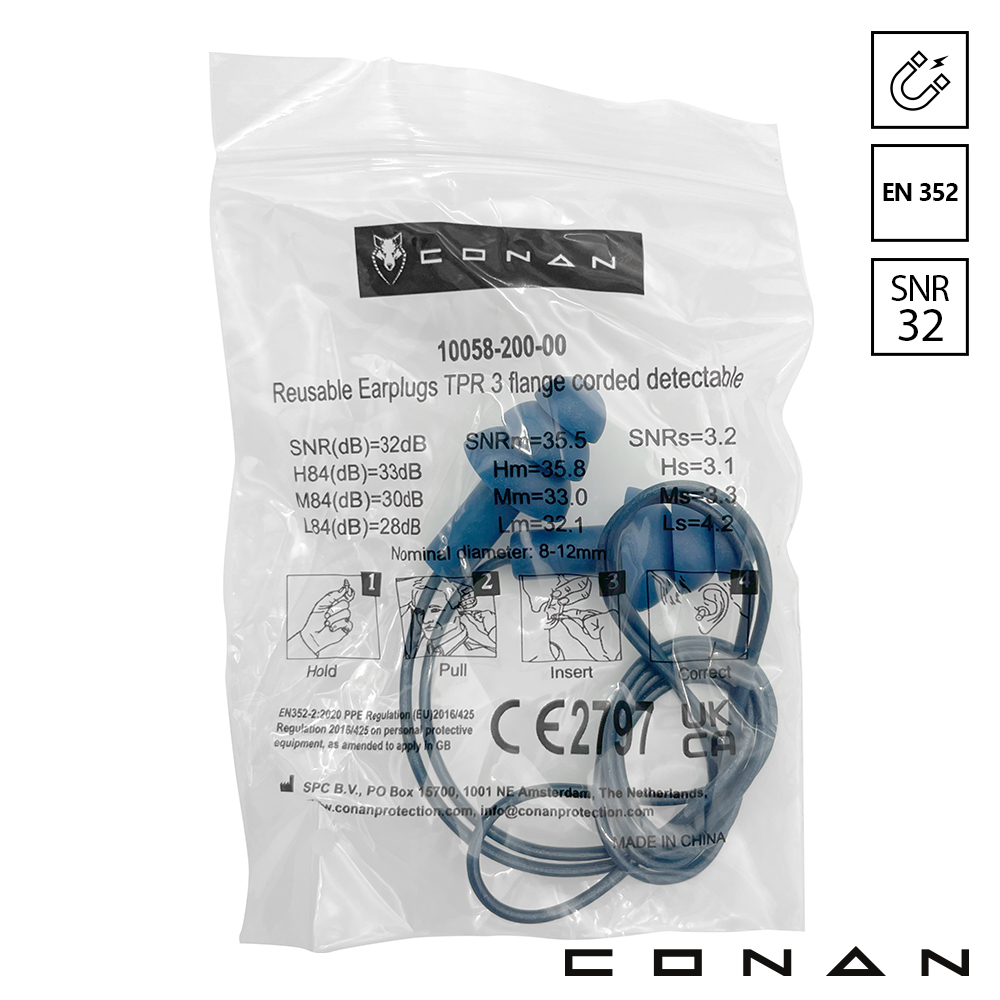 Conan 10-058 detecteerbare oordoppen 3 lamellen met koord SNR 32