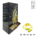 Conan 10-061 geel/witte conische oordoppen gemaakt van PU schuim met PVC koord. Betrouwbare disposable gehoorbescherming die geluidsniveaus reduceert tot 37 dB. Het zachte Polyurethaan is kneedbaar en veert weer terug in de gehoorgang voor een maximale demping en hoog draagcomfort. Geschikt voor eenmalig gebruik, geleverd in dispenserdoos met 200 paar separaat verpakte oordoppen.