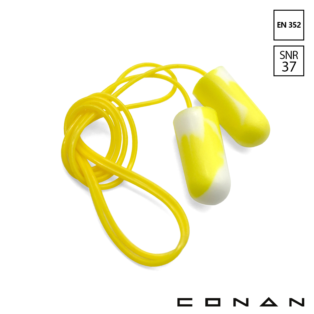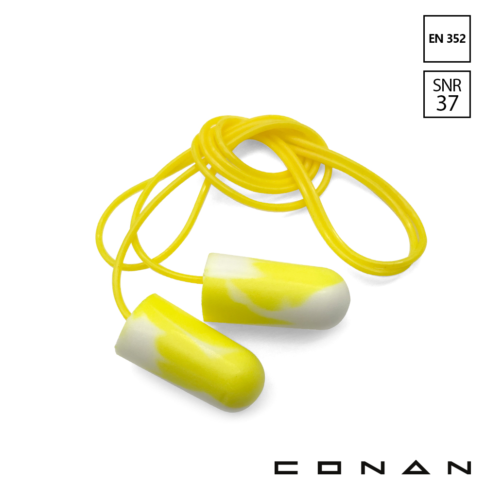 Conan 10-061 oordoppen geel/wit PU-schuim met koord 37 dB