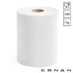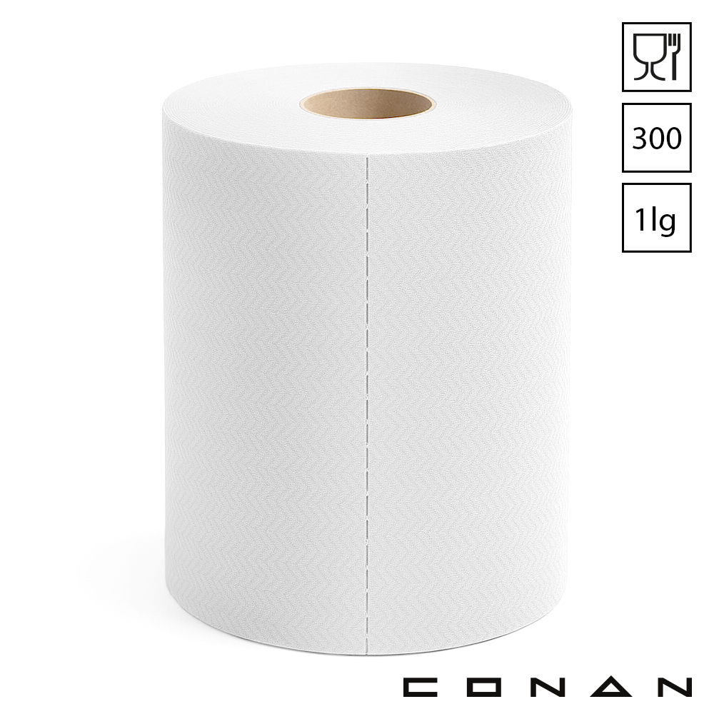 Conan 10-136 blauw of witte 1-laags midi poetspapier op rol van 300 meter met centerfeed-uitname. Deze middelgrote poetsrollen met voorgeperforeerde vellen zijn food grade gecertificeerd en geschikt voor hygiënische gebruik in een food omgeving. Conan 10-136 midi poetsrollen worden geleverd per pak met hierin 6 rollen en zijn uit voorraad leverbaar.