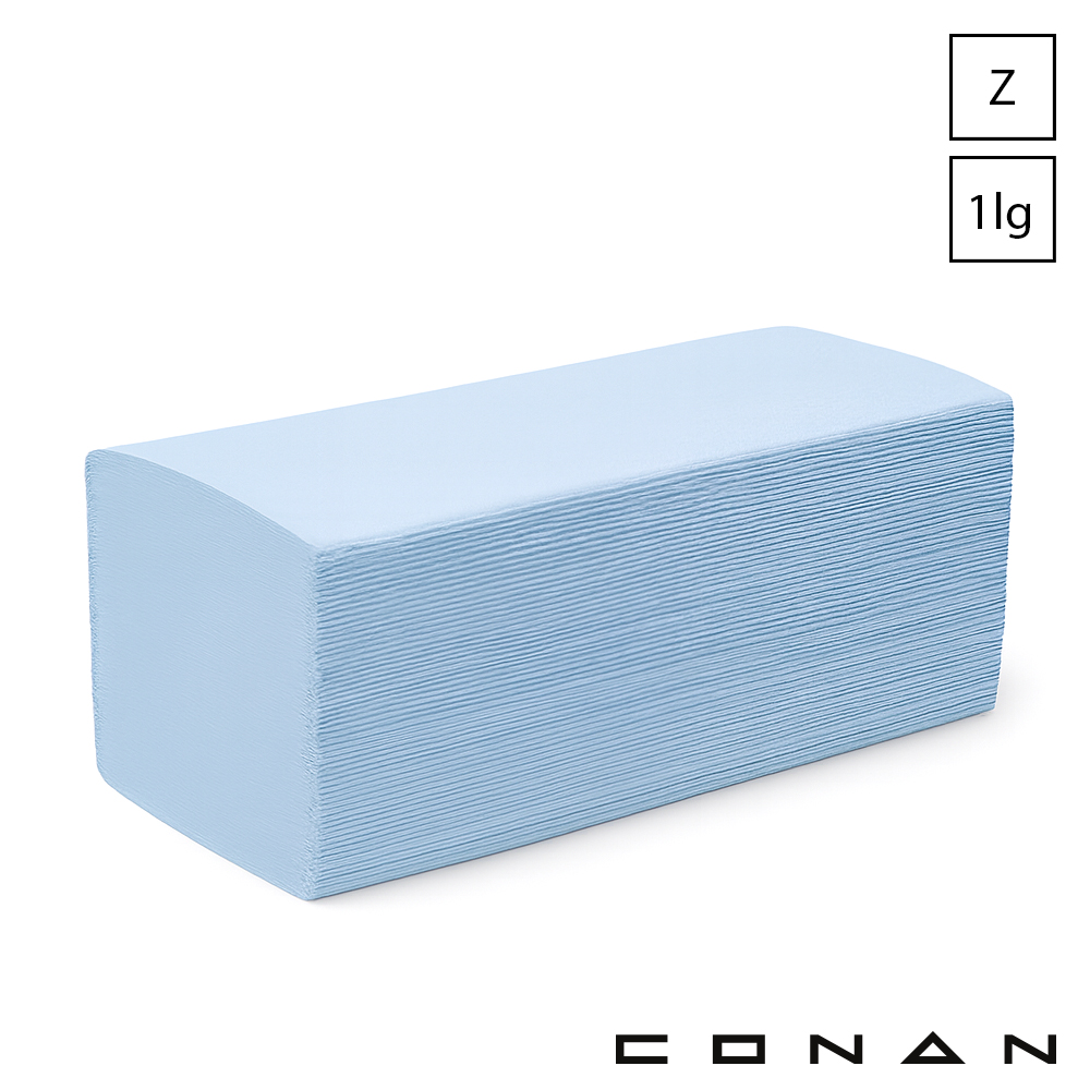 Conan 10-142 blauw handdoekpapier 1-laags met z-vouw gemaakt van gerecycled materiaal. Deze vocht absorberende papieren handdoekjes met formaat 23×25 cm zijn geschikt voor compatibel z-vouw dispensersystemen. Ideaal voor gebruik op drukbezochte sanitaire locaties en elke werkplek. Conan 10-142 handdoekpapier wordt geleverd in doos met 20 bundels van 250 stuks.