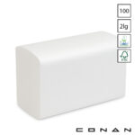Conan 10-144 2-Laags wit handdoekpapier met multifold gemaakt van 100% pure pulp. Deze vocht absorberende papieren handdoekjes met formaat 32×20,3 zijn geschikt voor compatibel multifold dispensersystemen. Ideaal voor gebruik op drukbezochte sanitaire locaties en elke werkplek. Conan 10-144 handdoekpapier wordt geleverd in doos met 25 bundels van 120 stuks.