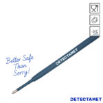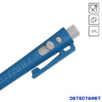 Blauwe Detectamet detecteerbare HD intrekbare gel pen met clip en blauwe gel inkt. Deze voedselveilige metaal- en röntgen detecteerbare HD-pennen met koudebestendige inkt (-5°C) zijn geschikt voor contact met voedingsmiddelen en voldoen aan de FDA en BRCGS voedselveiligheid standaard. Zowel de praktisch onbreekbare polymeerbehuizing als het gel inktpatroon zijn detecteerbaar. Dit is de veiligste pen voor de voedings- en farmaceutische industrie.