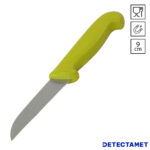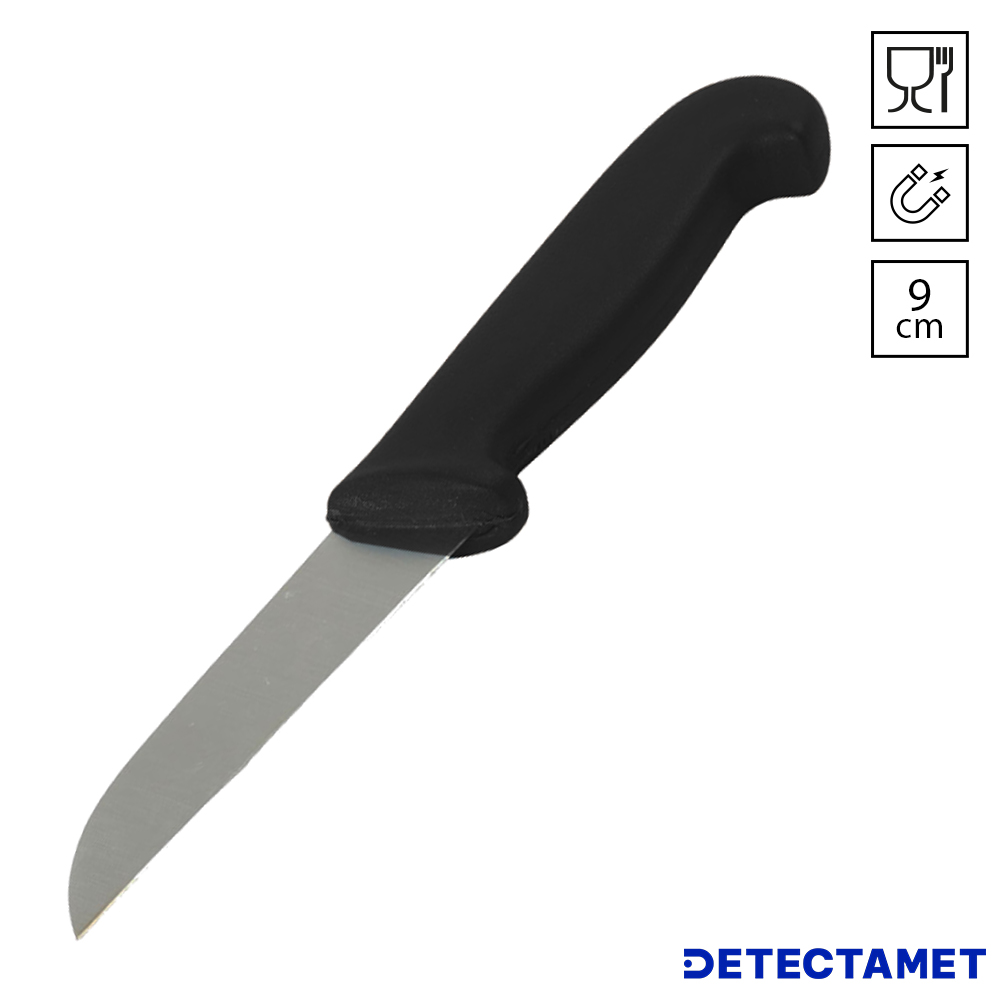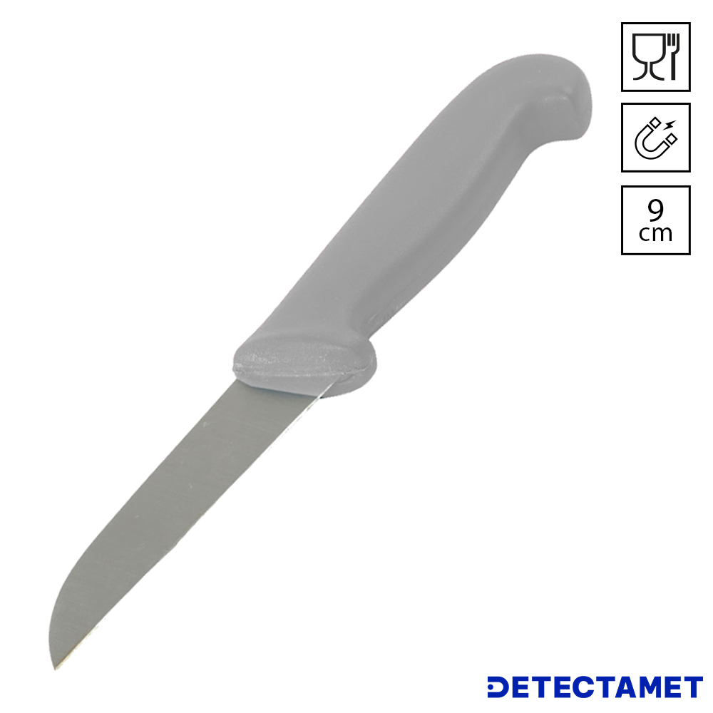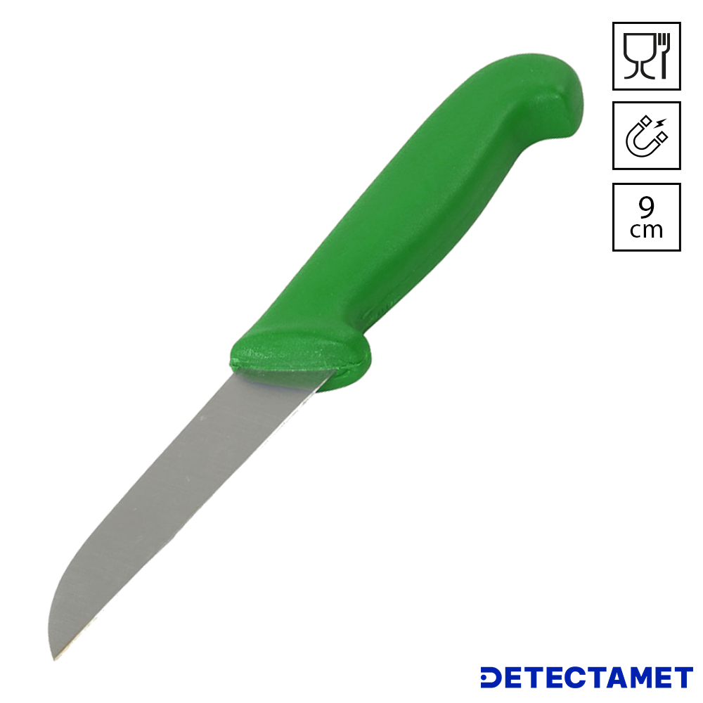 De Detectamet detecteerbare groentemessen hebben een recht lemmet van 9 cm. Dit type mes is gemaakt van gehard en getemperd roestvrij staal (Sheffield Steel) met een food grade polymeer handvat. Zowel de kunststof greep als het roestvrijstalen mes zijn metaal- en röntgen detecteerbaar. Dit food grade en FDA-goedgekeurde mes is per stuk verkrijgbaar in 8 verschillende kleuren, ideaal voor kleurcodering.