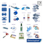Detectaplast 90405 compleet navulpakket voor de Detectaplast Medic Food Box XL 9040 EHBO-koffer. Dit complete pakket bevat de exacte inhoud van deze oranje verbandkoffer en is speciaal samengesteld voor de voedingsindustrie. De set bevat onder andere diverse soorten detecteerbare pleisters, verbanden en een reddingsdeken. Voldoet aan de HACCP-normen en is speciaal ontwikkeld voor EHBO in hygiënische en voedselverwerkende omgevingen.