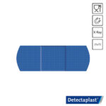 Blauwe Detectaplast Super Stretch X-ray 8540 metaal- en röntgen detecteerbare pleisters 25×72 mm. Deze visueel, elektromagnetisch en röntgen detecteerbare blauwe textiele pleisters zijn geschikt voor gebruik op hygiënische locaties en in de voedingsindustrie. De 8540-pleisters met aluminiumfolie en X-ray-draad onder het wondkussen zijn voorzien van hypoallergene lijm. Ze zijn latexvrij, geven niet af en voldoen aan de HACCP-, IFS- en BRC-standaarden.