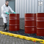 - Kunststof lekbakken, bestand tegen chemicaliën en corrosieve vloeistoffen.