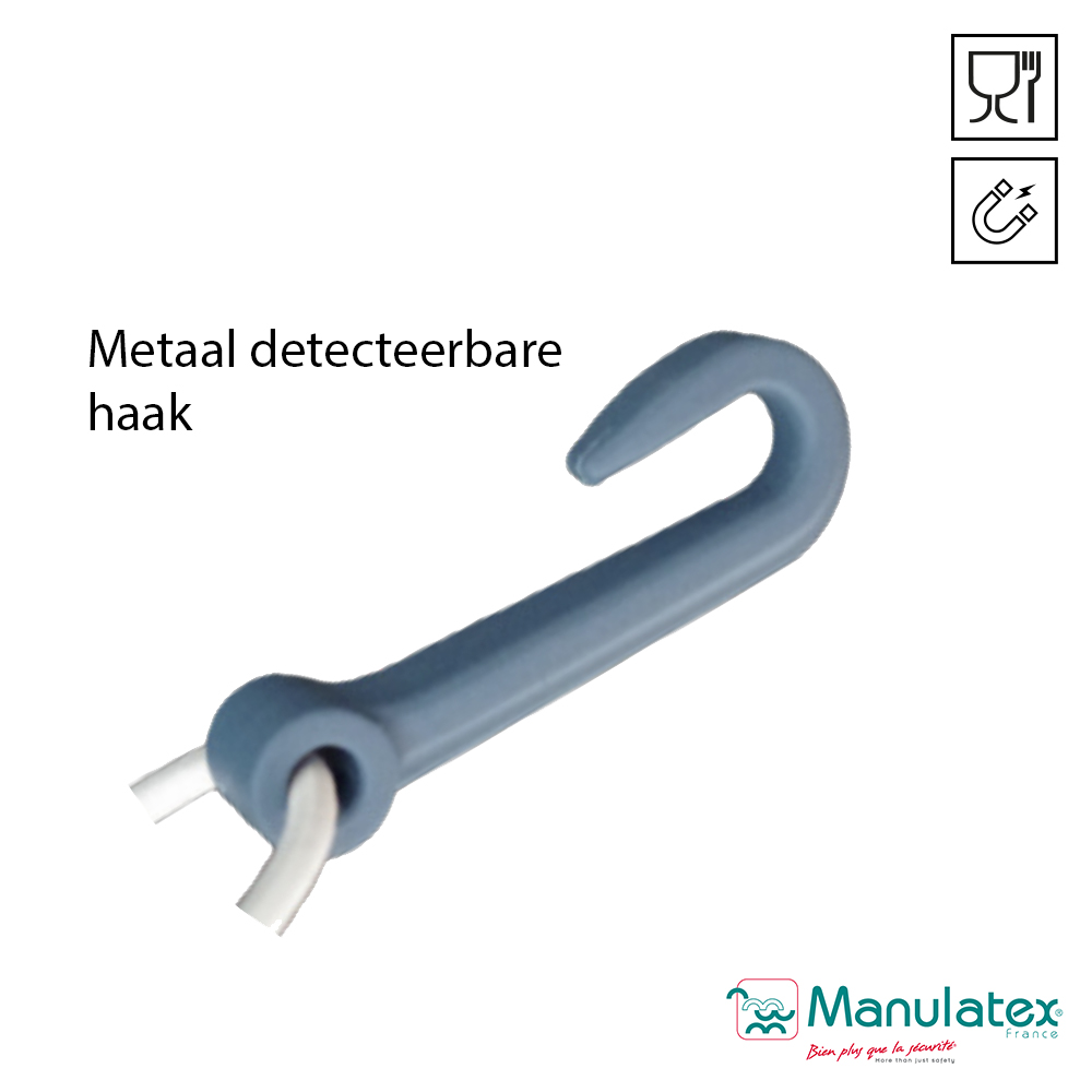 - De bevestigingshaak is gemaakt van metaal detecteerbaar kunststof.
