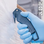 - Snij moeiteloos door plakband, folie, zakken, strapbanden, vilt, papier en tape.