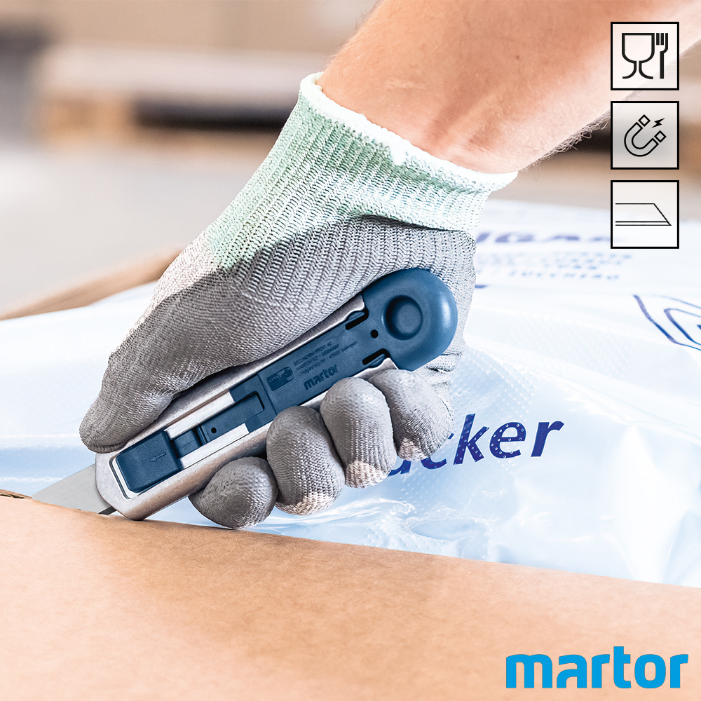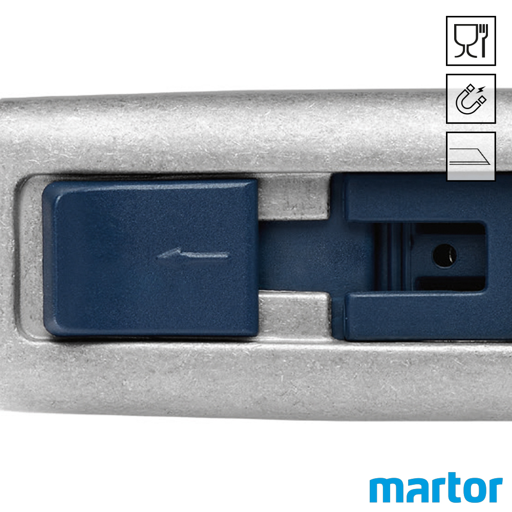 Martor Secunorm Profi40 MDP 11900771 detecteerbaar veiligheidsmes met ongelakte aluminium behuizing. De houder is zowel metaal- als X-ray detecteerbaar en Automatic Blade Retraction biedt je maximale snijveiligheid. Het vervangbare Styropor mesje met 36 mm snijdiepte is zeer sterk en zonder gereedschap te vervangen. Ideaal snijgereedschap voor karton, verpakkingen, zakken en folies.