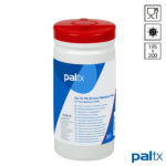 PALtx IPA food wipes met formaat van 195×200 mm worden standaard geleverd in handige tube of emmer waarbij je de doekjes makkelijk aan de bovenzijde kunt uitnemen. De dispenserverpakking is met behulp van de rode dop altijd snel te openen en goed af te sluiten.