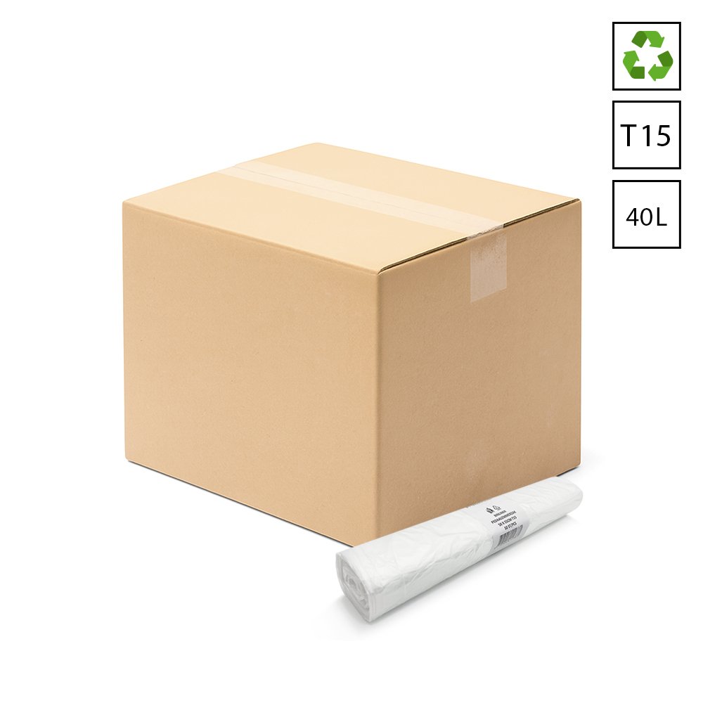 - De kwaliteit T15 staat garant voor een sterke doorzichtige afvalzak.