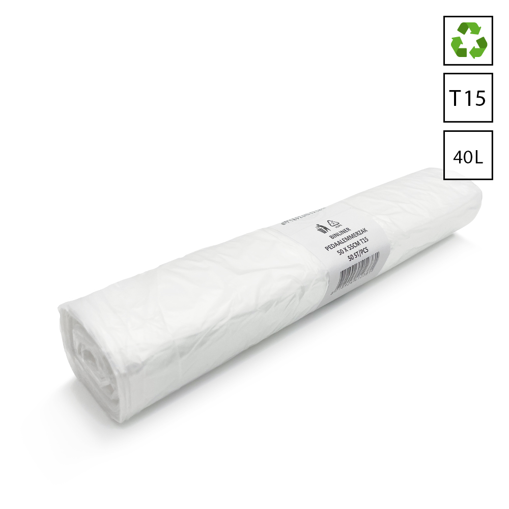 Pedaalemmerzakken 40 liter 50×55 cm HDPE T15 gerecycled transparant