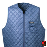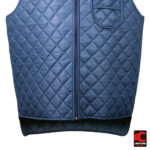 - Mouwloos model met rits, ruitpatroon, nierbescherming en afsluitbare borstzak.