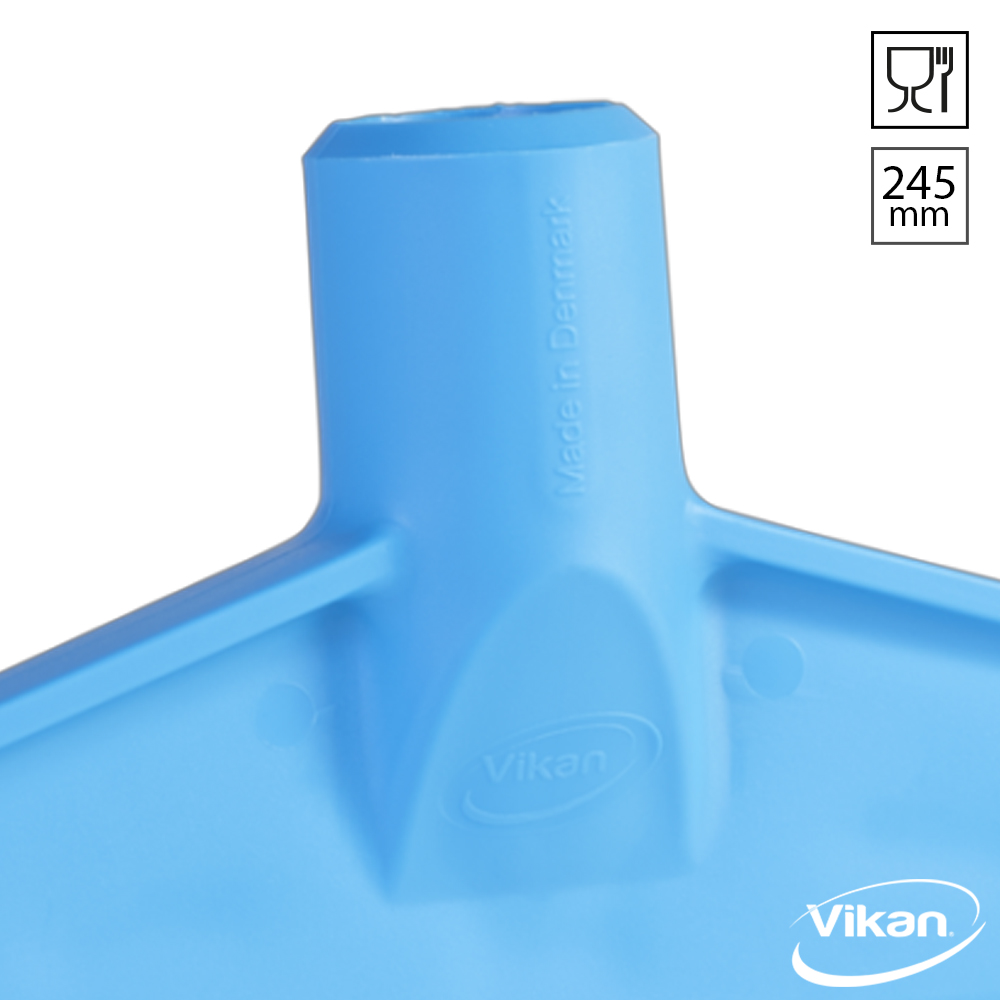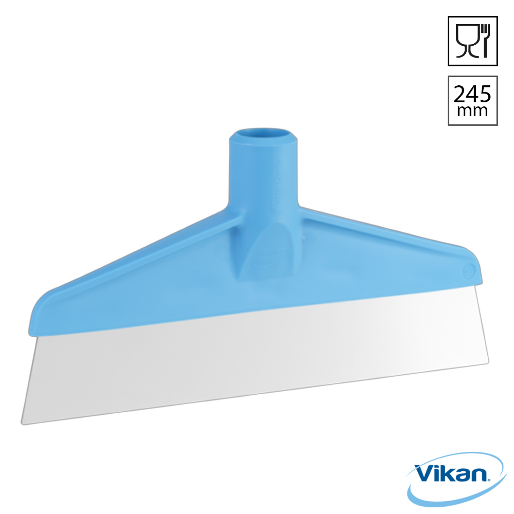 Vikan 2908 tafel- en vloerschraper, 245 mm breed, met food grade polypropyleen behuizing en een RVS-blad van 1 mm dik. Met deze schraper verwijder je eenvoudig hardnekkige voedselresten of etiketten van vloeren en andere oppervlakken. De Vikan 2908 is verkrijgbaar in 7 kleuren en is compatibel met elke Vikan-steel met schroefdraad. Geschikt voor zowel vaatwassers (tot 93 °C) als sterilisatie in een autoclaaf (tot 121 °C).