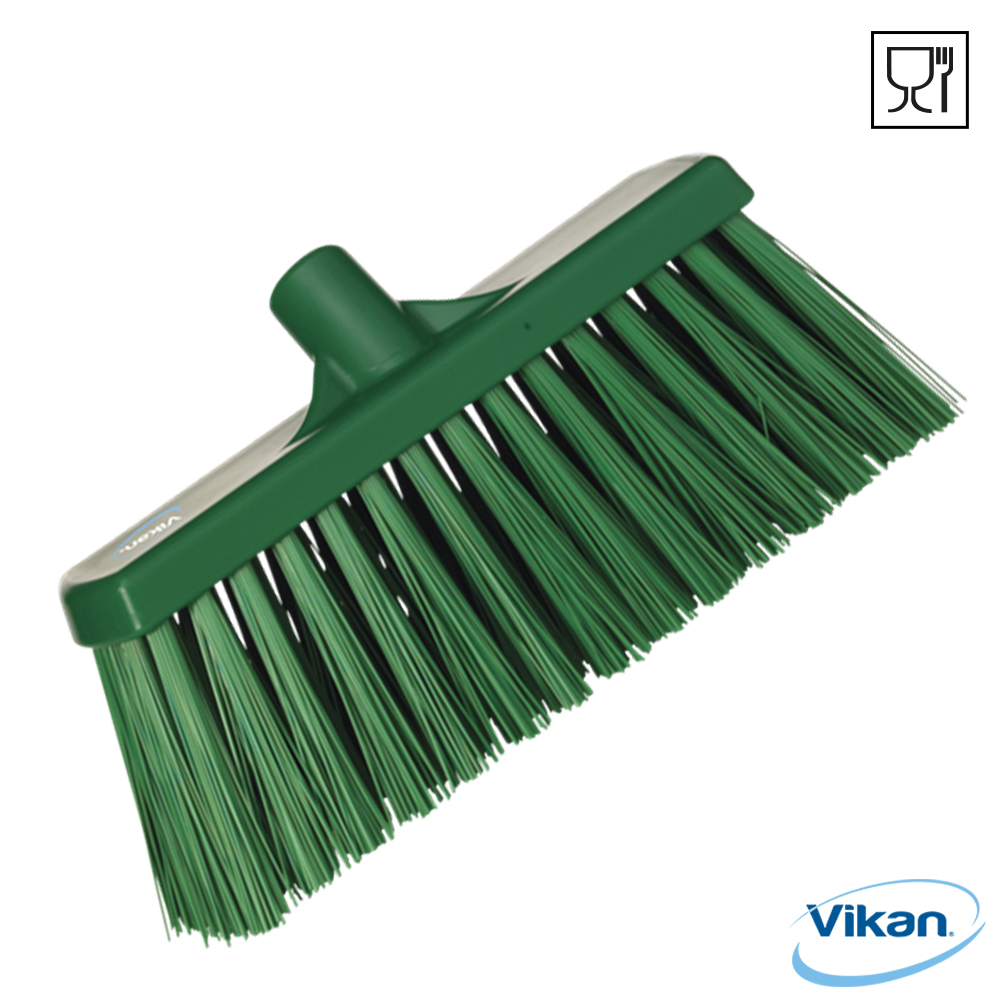 Vikan 2915 bezem 330 mm met zeer harde polyester borstelharen (105 mm) en oersterke polypropyleen behuizing. Deze food grade bezem voor intensief gebruik is geschikt voor contact met voedingsmiddelen en kan zowel binnen als buiten worden ingezet. De hygiënische Vikan 2915 bezem is verkrijgbaar in 5 kleuren en geschikt voor de vaatwasser (tot 93 °C) en de autoclaaf (tot 121 °C).