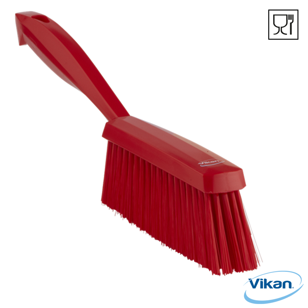 Vikan 4587 handvegers 300 mm met zachte borstelharen en oersterke polypropyleen behuizing. Deze food grade gecertificeerde handveger is geschikt voor contact met voedingsmiddelen en ideaal voor het reinigen van transportbanden en oppervlakken voor voedselbereiding. De hygiënische Vikan 4587 is beschikbaar in 9 kleuren, geschikt voor vaatwassers (tot 93°C) en sterilisatie met een autoclaaf (tot 121°C).