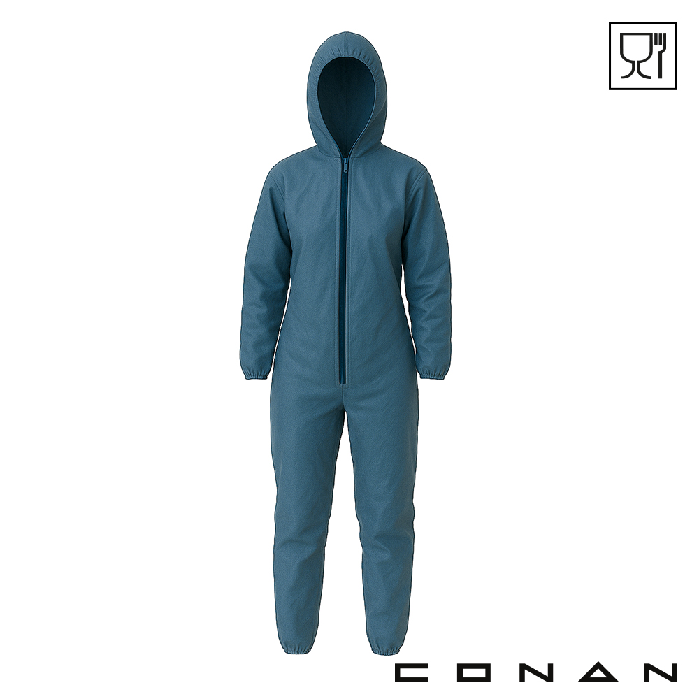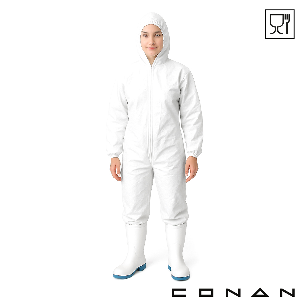 Met het dragen van food grade Conan 10-041 wegwerpoveralls: