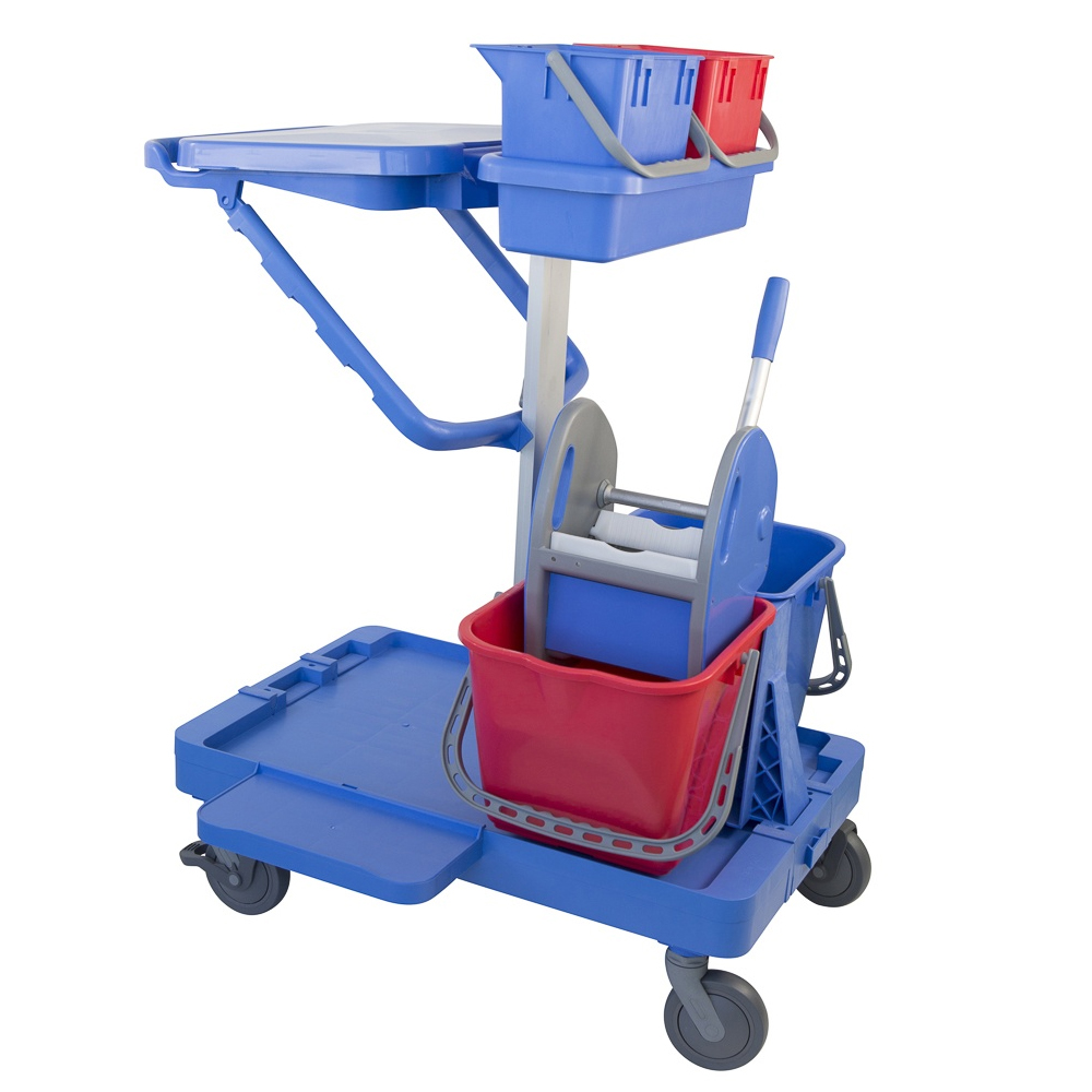 Werkwagen met 4 zwenkwielen en kunststof/aluminium frame. Deze complete materiaalwagen koop je online bij de gespecialiseerde PBM-groothandel SafetyProducts.com. Werk- en schoonmaakmateriaal razendsnel geleverd, altijd op voorraad.